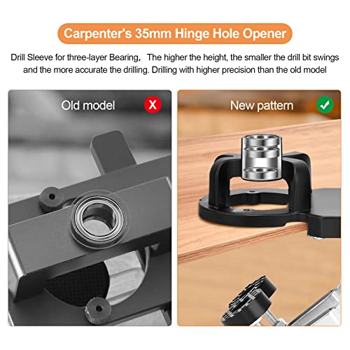 Towwoo Dima di Foratura Cerniera 35mm, Dima per Fori a Tasca con Clip, Localizzatore di Punzonatura Regolabile per Cerniere per Armadietti, Guida per Trapano a Tre Cuscinetti, Lega di Alluminio