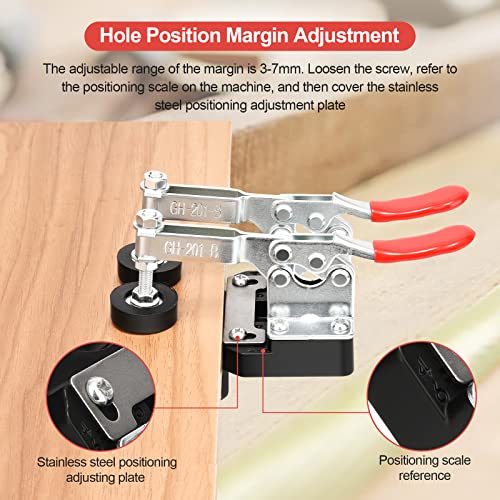 ✅ 【Nota】 La maschera di foratura incernierata ha un localizzatore di fori laterali, ma non può regolare la distanza. Le cerniere in commercio hanno diverse distanze tra i fori laterali. Se la distanza tra i fori sul lato cerniera non corrisponde al modello, utilizzare i fori sulla cerniera per il posizionamento. Lubrificare i cuscinetti prima di utilizzare l'utensile e quando non in uso per ridurre l'usura e la ruggine.
