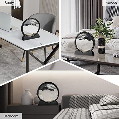 Towwoo Immagine di Sabbia in Movimento, 3D Pittura di Sabbia Che Scorre Fluente, Cornice di Flow Sabbia Clessidra Scenario Paesaggio Dinamica Art Decorazione Regalo per Casa Ufficio (Bianco e nero)