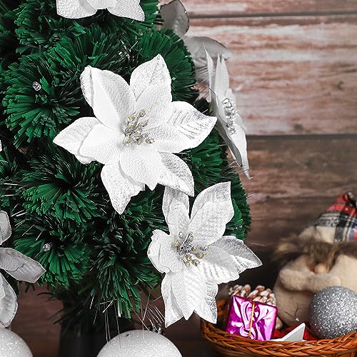 TOYANDONA 24pcs fiori artificiali di natale argento poinsettia ornamenti per alberi di natale (13 cm)