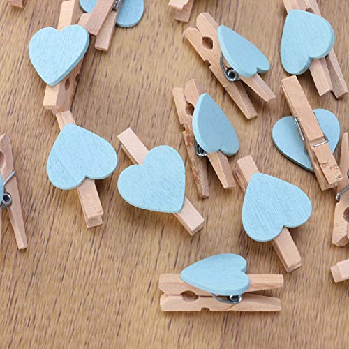 TOYANDONA 50 Pz a Forma di Cuore Clip di Legno Piccola Foto Immagine mollette Artigianali pioli (Blu)