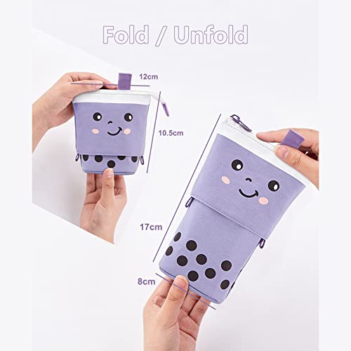 TOYESS - Astuccio Telescopico per Matite a Forma di Tè al Latte per Bambina e Bambino, Telescopica Astuccio Portapenne in Tela per Bambini, Ragazze e Ragazzi, Viola