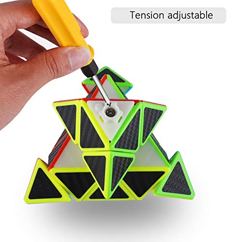TOYESS Cubo Piramide, Pyraminx Speed Cube 3x3 Fibra di Carbonio Sticker, Triangolo Cubo Magico 3x3 di Veloce e Liscio, Regalo di Natale per Bambini & Adulto (Nero)