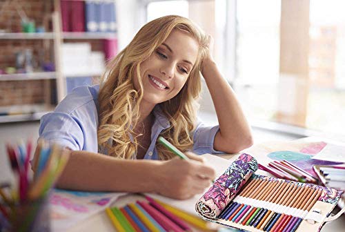 TOYESS Custodia con Astuccio Arrotolabile in Tela per Matite Colorate, Astuccio Rotolo per Tinta Unita, Astuccio Scuola per Artista, Scuola, Ufficio e Animale Ufficio, 03