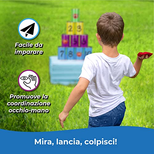 Toyfel Set di 13pz. gioco di lancio delle lattine Davin gioco di lancio per bambini - gioco da esterni e interni - gioco da festa, compleanno, da viaggio - gioco delle lattine all'aperto