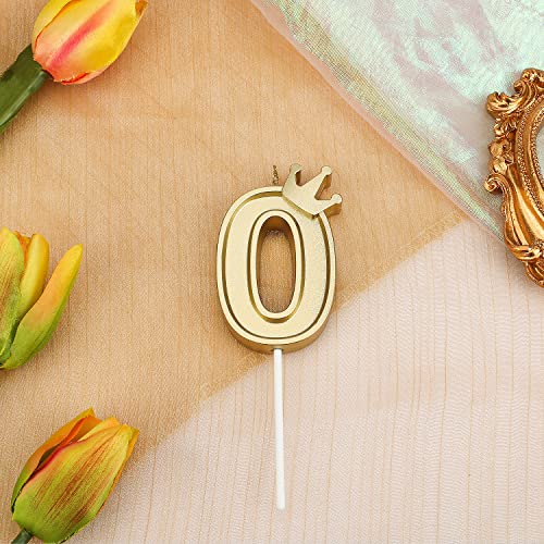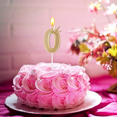 TOYMIS 7,6 cm Candela con Numero di Corona, Candele Numeri Grandi Candele di Compleanno Candele a Forma di Numero 3D per Torte di Compleanno Anniversario Feste di Matrimonio (Oro, 0)