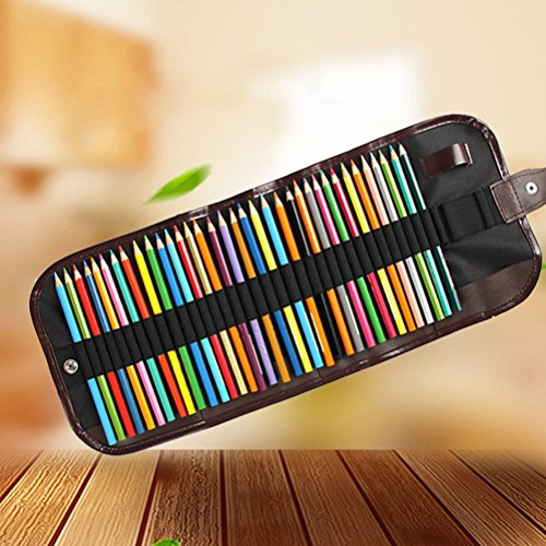 TOYMYTOY Sacchetto portamatite arrotolabile in tela e pelle con bottone pressione regolabile 36 posti in Nero