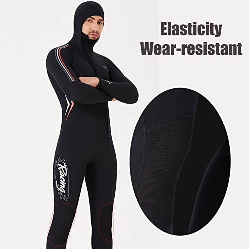 TOYOMO Mute da Uomo Muta da Sub per Tutto Il Corpo con Cappuccio Neoprene da 3 Mm Cerniera Frontale Costume da Bagno per Lo Snorkeling, Il Surf, Il Nuoto,Nero,M