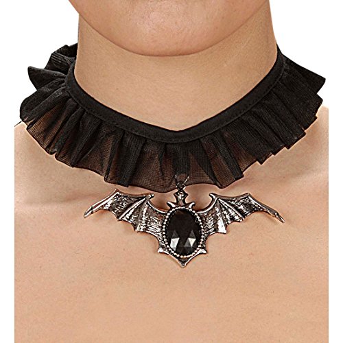 NET TOYS Girocollo Stile Gotico con Pendente Immagine Pipistrello Collana Colore Argento e Nero Travestimento Maschera Vampiro Halloween