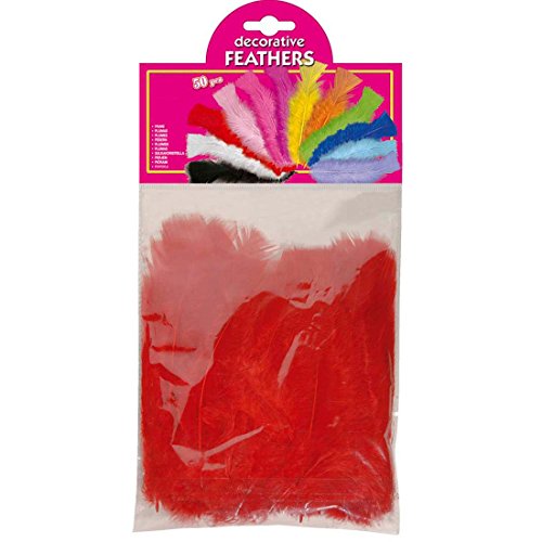 NET TOYS 50 Piume Ornamentali Rosse Lunghe Circa 10 Centimetri Artigianali Penne Decorative Samba Carnevale Rio Velcro - 10 cm