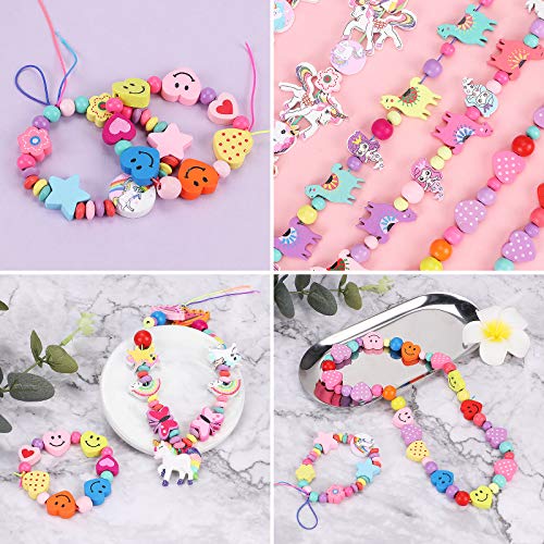 Toyssa 440+ PZ Perline per Bambini Perline Fai da Te per Bambini Set Unicorno Perline per Braccialetti Collane Anello Bambini Perline Legno Set Perline per Gioielli Fai da Te Regalo per Ragazze