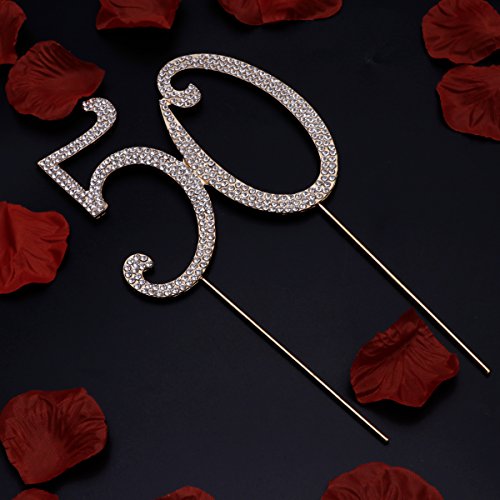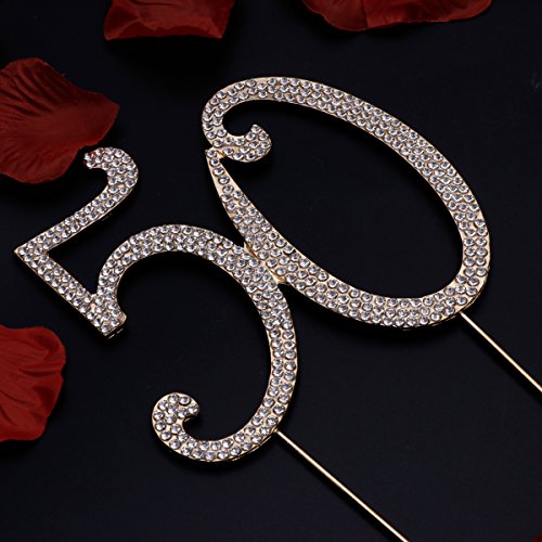 Toyvian 50 Cake Topper per 50 ° Compleanno Festa o Anniversario Cristallo Strass Decorativo Cake Topper per Feste (Oro)