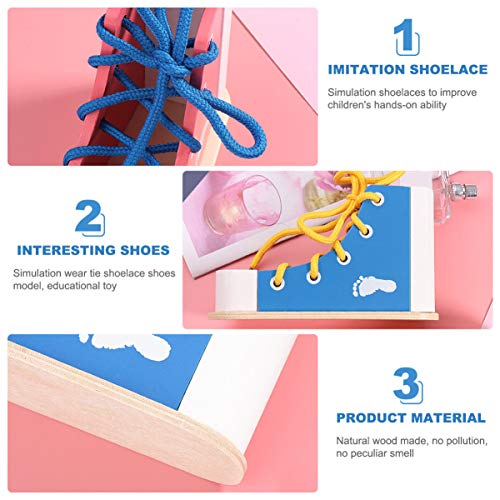 Toyvian Giocattolo di Scarpa Allacciatura in Legno Imparare a Legare Lacci Scarpe Attaccante Kit Didattico per Bambini Confezione da 2