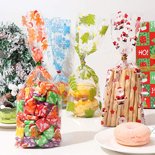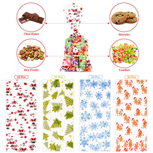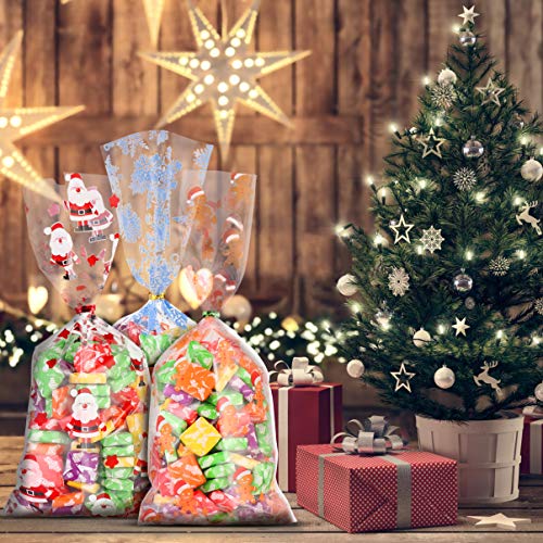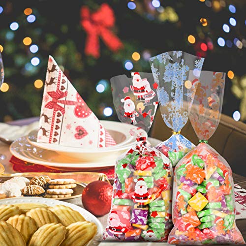Toyvian, sacchetti regalo di Natale trasparenti in cellophane con 300 fascette per Natale, feste, matrimoni (confezione da 200)