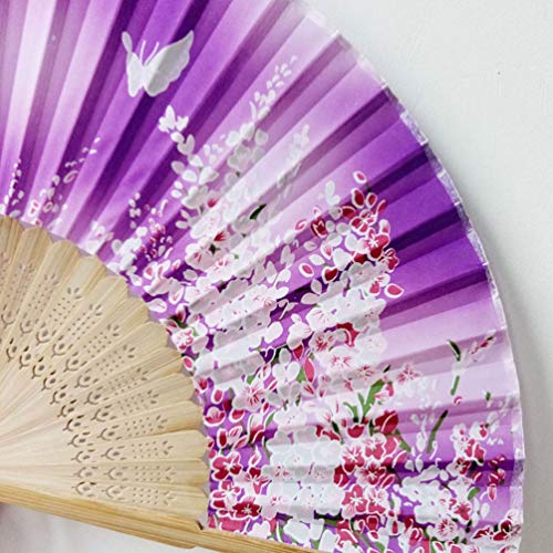Toyvian Ventaglio Pieghevole in Stile Cinese con Ventaglio Palmare in con Motivo a Fiore di Farfalla (viola)