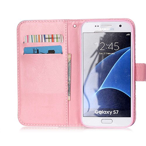 Toyym Custodia di pelle a libro per Samsung Galaxy S7, con scomparti per tessere, custodia a portafogli in pelle di qualità, design creativo, con tappo antipolvere a fiore e 1 penna stilo, Similpelle Pelle, Litter Girl, Samsung Galaxy S7