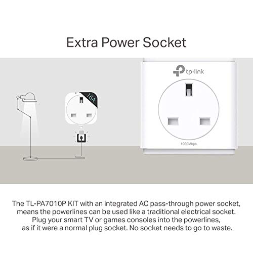 TP-Link AV1000 Adattatore Powerline Gigabit a 1 porta, Pass-through, fino a 1000 Mbps (TL-PA7010P KIT (EU))
