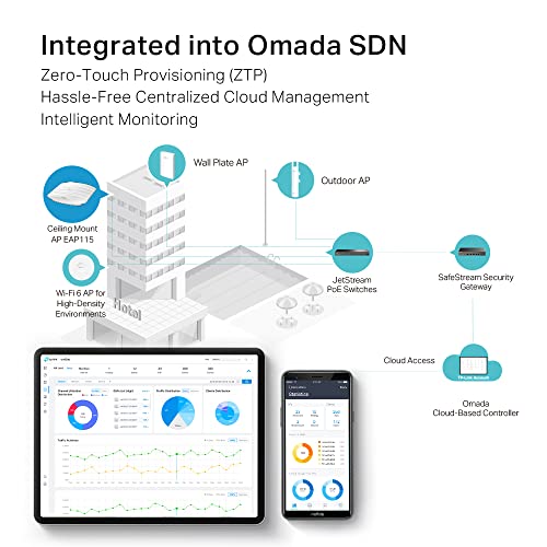 TP-Link EAP115 Access Point Wi-Fi N300 Mbps AP Wireless, Supporto PoE 802.3af, 1 Fast LAN, Gestione centralizzata, Captive Portal