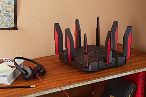 TP-Link Router da gioco a tri-Band AC5400 MU-MIMO, 8 porte LAN Gigabit, CPU quad-core a 64 bit da 1,8 GHz, 2 porte USB 3.0, ideale per giochi Xbox/PS4/Steam e 4K, compatibile con Alexa (Archer C5400X)