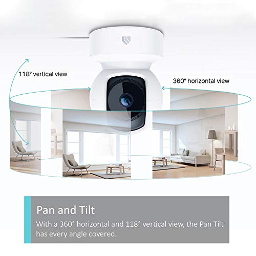 PAN AND TILT The Kasa Spot Pan Tilt indoor security camera is perfect for wide-open living spaces and can rotate to cover multiple points in your room. With 360 rotational and 118 vertical views, the pan tilt camera can monitor every angle of any room.
