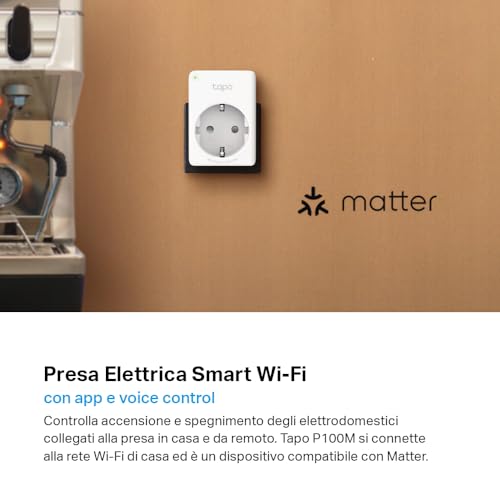 TP-Link Tapo P100M Matter Presa Smart, Presa Intelligente, WiFi Intelligente Smart Plug, Compatibile con Alexa e Google Home, Spegnimento Automatico, Controllo Remoto Tramite APP Tapo, 10A, 2300W
