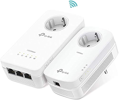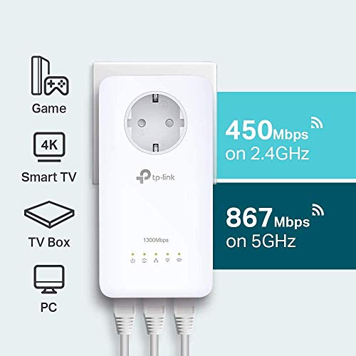 TP-Link TL-WPA8630P Kit AV1300 Wi-Fi AC 1350 MBps, 2.4 GHz/5 GHz, con Presa Passante, 3 Porte Gigabit, 2x2 MIMO, HomePlug AV2, Pulsante Wi-Fi Clone, CPU Qualcomm