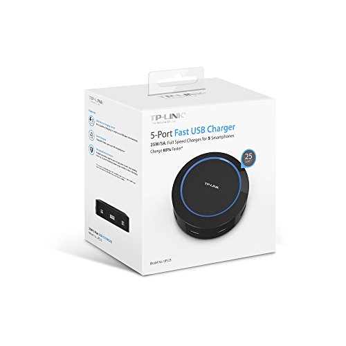 TP-Link UP525 Caricatore Portatile con 5 Porte USB, Tecnologia Auto Detect, Potenza 25 W, Nero