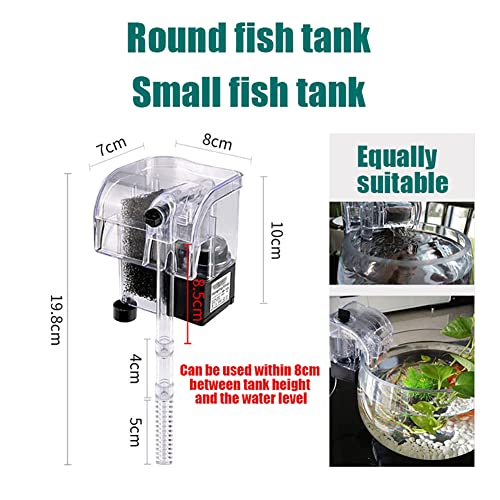 Installazione facile: il filtro per serbatoio di pesce adotta un design a sospensione, che fa un uso ragionevole dello spazio del serbatoio di pesce ed è adatto a piccoli pesci e piante acquatiche