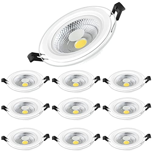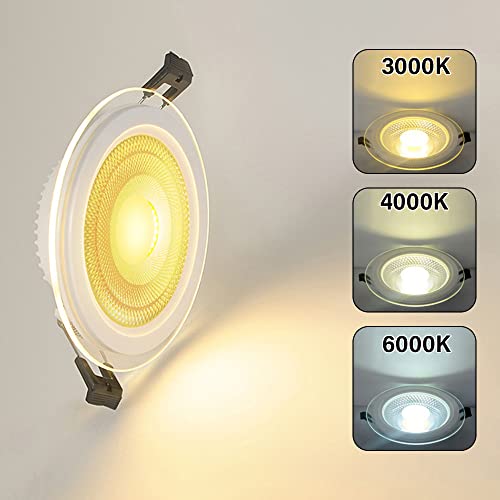 TPMAFF Faretti da Incasso a LED,Piastra Guida Luce Rotonda in Vetro Faretto da Incasso COB,5W 7W 12W 18W Plafoniera da Incasso,Profondità Extra Sottile 45mm,Trasformatore Incluso,Confezione da 10 Pezz