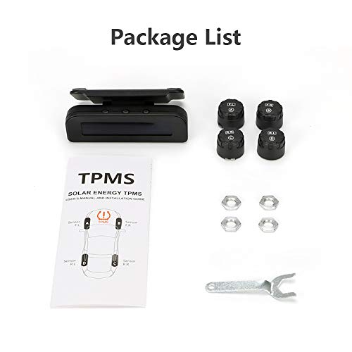 TPMS Sistema di monitoraggio della Pressione degli Pneumatici a energia Solare 22-87 psi, Montaggio sul Parabrezza con 4 sensori Esterni, Sistema di Allarme Automatico in Tempo Reale