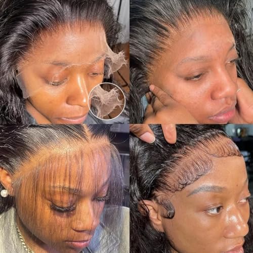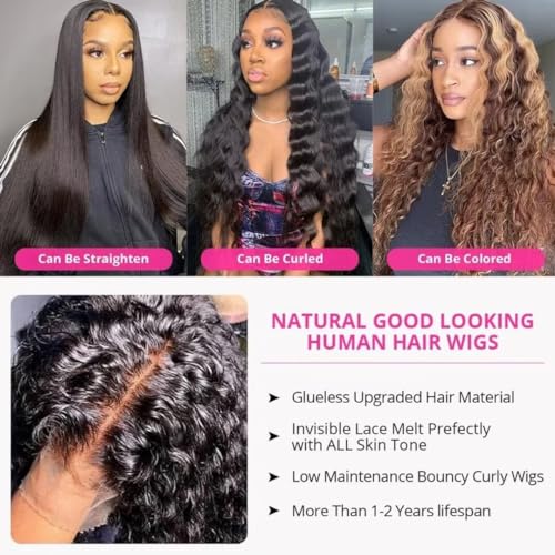 TQPQHQT Parrucche Capelli Veri Parrucche Donna Black Wig Water Wave Wigs For Black Women 4x4 Hd Lace Closure Wig With Baby Hair Peruvian Virgin Human Hair Wigs Glueless Wig 30 Inch