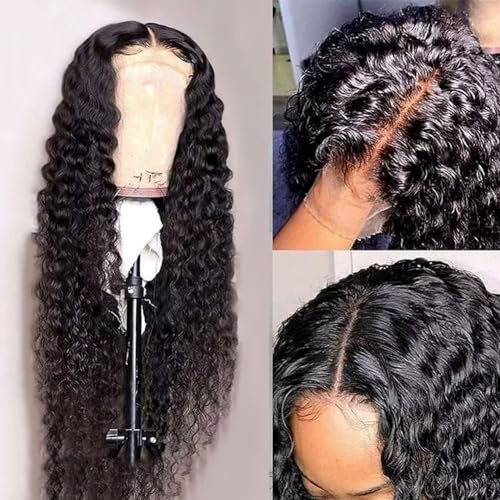TQPQHQT Parrucche Capelli Veri Human Hair Wigs With Baby Hair 4x4 Lace Closure Wig Unprocessed Brazilian Virgin Hair Wig For Women Natural Color Water Wave Wig 150% Density 16 Inch