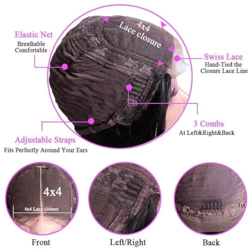 2.Hair Quality: Highlight 4x4 Lace real human hair Wig. No shedding, no tangles, no lices, can be straightened, curled. Look like your own hair