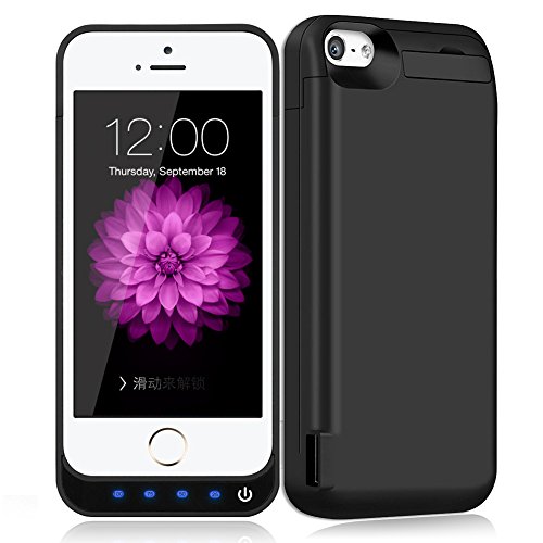 TQTHL - Custodia di ricarica con batteria da 4800 mAh custodia con funzione cavalletto 4800mAh iP 5/5S/5C/SE Battery Case-Gray