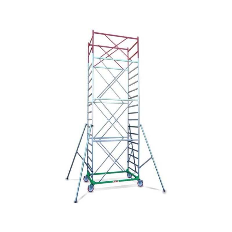 Trabattello Mobile Professionale per Edilizia in Acciaio Zincato Impalcatura Altezza Lavoro: 1130 Il trabattello professionale metal 5 nasce per tutti colore che necessitano di svolgere lavori ad altezze elevate con la massima sicurezza. E' costruito in ferro zincato con scalini e correnti in tubolare da 40x15 mm, piantoni da 35x1.5 e diagonali in acciaio da 20x1.5. Ha una dimensione di base 200x115 cm e un'altezza lavoro che varia da 1,90 mt a 14,30 mt. Il piano lavoro ha una dimensione di 172x96 cm I quattro livellatori a vite della base visibili nella foto sono optional. Possono essere acquistati separatamente. (Non inclusi nel prezzo) I livellatori per la base consentono di lavorare su superfici non in piano con un dislivello massimo di 22 cm. La base ha una dimensione di 200x115 cm compreso l'ingombro delle ruote girevoli. Il basamento è costruito in ferro, successivamente viene zincato elettroliticamente e verniciato in polveri epodossiche. Questo trabattello viene fornito con