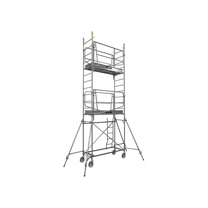 USO - Trabattello dotato di 4 ganci in cima ai montanti per un posizionamento facile in cantiere tramite gru. - Attrezzature specialmente progettato per i cantieri di costruzione o ristrutturazione, lavori pubblici o privati. - Struttura aperta per facilitare la circolazione degli operai e tecnici che intevengono in cantiere. - Materiale dotate di stabilizzatori regolabili per una migliore stabilità durante gli interventi. - Il pannello ha una superfice antiscivolo che favorisce il buon mantenimento dell'operatore e riducce i rischi di caduta. - I parapetti sono un mezzo sicuro per mettere in sicurezza i lavori degli operatori: possono essere un appoggio durante il lavoro. - Il trabattello può avere due livelli e può raggiungere un'altezza di lavoro confortevole di 5.60m VANTAGGI DEL PRODOTTO - Il trabattello è abbastanza stretto da permettere di stare in piedi e di lavorare sui pannelli di cassero - La struttura aperta permette ai lavoratori di passare sotto il ponteggio - Facile
