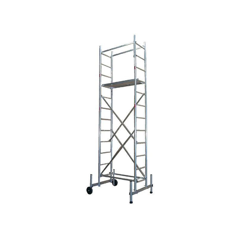 USO - Lavori multipli in altezza per il tuttofare occasionale o abituale - Ristrutturazione di scale alte - Lavori elettrici: installazione, manutenzione, relamping - Montaggio di controsoffitti, carteggiatura, verniciatura, aspirazione fumi, sistemi di sorveglianza, ecc. - Installazione di attrezzature nelle scale: sicurezza, sorveglianza, aspirazione dei fumi, ecc. LAVORI SULLE SCALE - Trabattello che consentono di lavorare sulle scale. - Quando si monta il trabattello, sfalsare le due scale. - Mantenere almeno 3 pioli sopra la superficie di lavoro per lavorare in sicurezza. LAVORO IN PENDENZA - Trabattello dotato di una piastra di base con 4 piedini regolabili. - L'altezza può essere regolata fino a 260 mm. - Per lavorare su terreni irregolari e livellare su marciapiedi, terreni irregolari o in pendenza. KIT PROFESSIONALE - Trabattello conformi al decreto 2004-924. - Dotato di un piano aggiuntivo, parapetto con guida e sottoparapetto e zoccoli. FACILE DA MONTARE - Trabattello