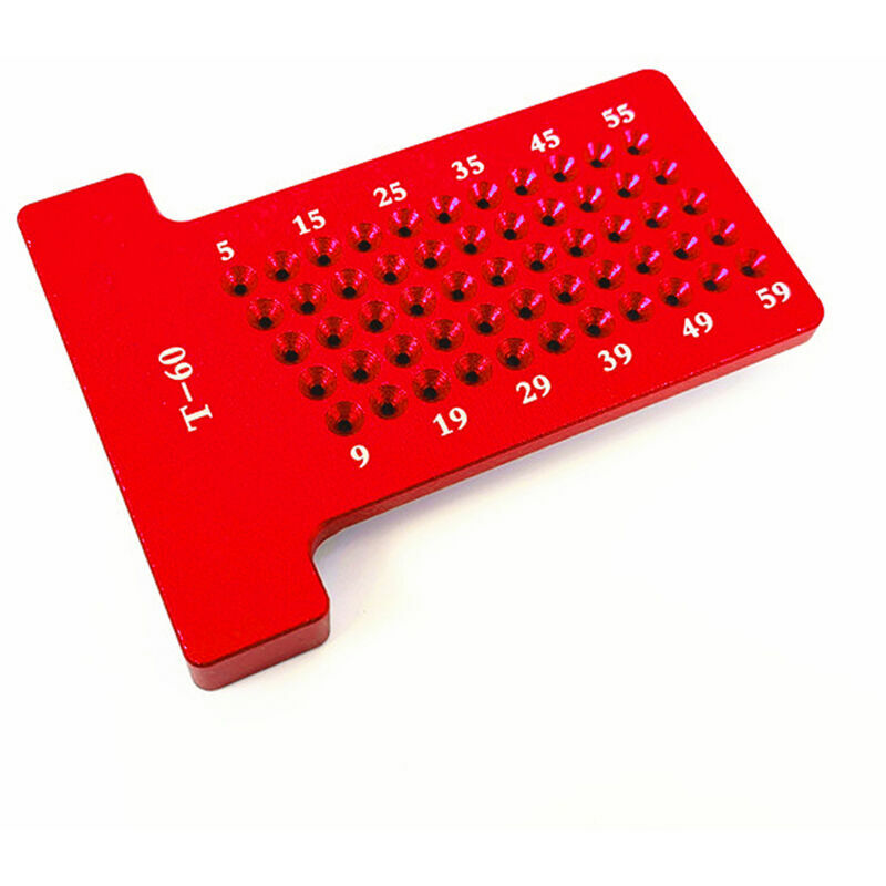 ossidazione anodica, resistente e resistente alla corrosione. Righello foro portatile, comodo per il trasporto intorno al carrello. Righello con precisione di marcatura con distanza del foro di 5mm e dimensione del foro di 1mm. Caratteristiche: Colore: blu/rosso (facoltativo) Materiale: lega d & #39;