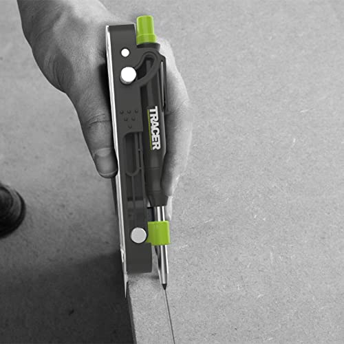 Kit di marcatura perfetto: il pacchetto TRACER ProScribe Tool viene fornito con una custodia resistente e compatta, il kit include anche una matita per costruzione a foro profondo TRACER, 4 cavi di ricambio in grafite, 2 cavi alternativi gialli (all'interno di un dispencettore di piombo anti-scatto) e fondine per il sito TRACER.