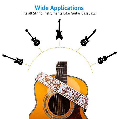 Tracolla Chitarra 5cm Cinturino in Stile Vintage Regolabile per Elettrico Acustica Classica Chitarra Basso Ukulele con Estremità in Vera Pelle 3 Plettri 2 Serrature 1 Cinturino Pulsante