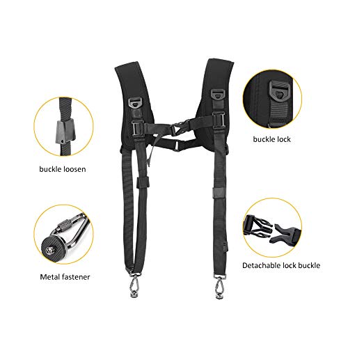 Tracolla per Doppia Fotocamera, Attacco rapido Portatile da 1/4 '' con Attacco a Vite Imbracatura Doppia per Spalla Imbottitura Morbida Assorbimento degli Urti Decompressione Cinghia
