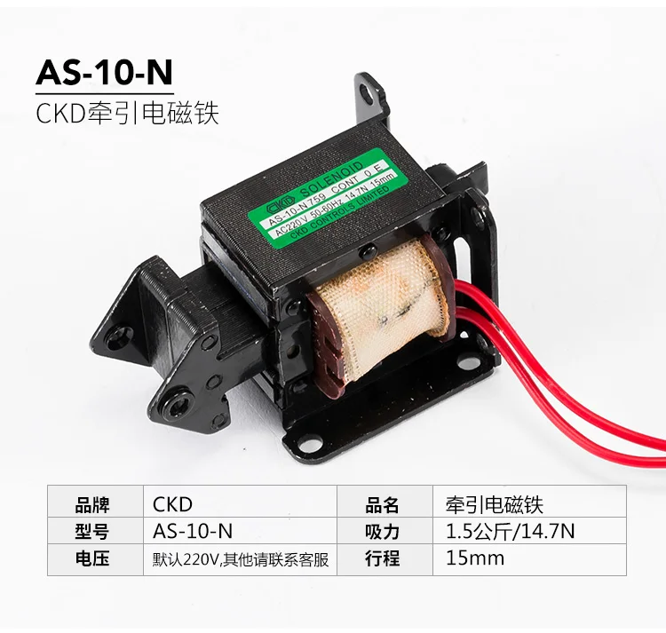CKD Traction Electromagnet 1.5KG 14.7N 15MM Stroke AS-10-N 759 AC220V 3 Wire 50-60Hz