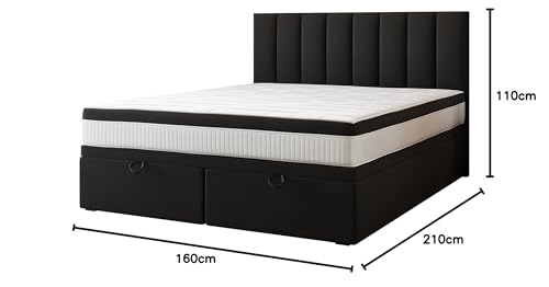 TRADA Letto a molle Bond con cassette letto matrimoniale con materasso imbottito (160 x 200 cm, nero)