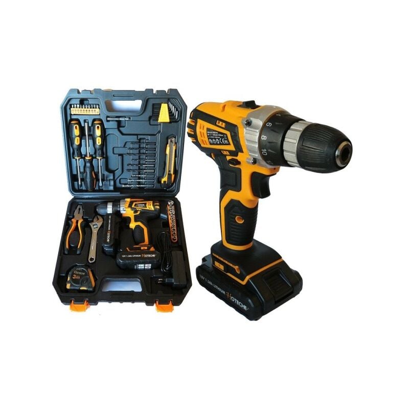 Set 47pz Trapano Avvitatore Autoserrante 10mm 18v 1.3a Accessori Doppia Batteriasiete Alla Ricerca Di Un Prodotto Utile E Soddisfacente Sotto Tutti I Punti Di Vista? In Questa Inserzione Vi Proponiamo Una Pratica Valigetta Contenente Al Suo Interno Ben 47 Pz Tra Cui Un Trapano Avvitatore A Batteria Con Doppia Batteriia E Caricatore. L'avvitatore è Un Modello A 18+1 Velocità Con Mandrino Autoserrante Da 10mm Con Possibilità Di Avvitare E Svitare E Con Rop Che Vanno Da 0-350/0-1350min-1 E Una Potenza Massima Di 22nm Din Utilizzo. Le Due Batterie Sono Da 18v 1.3ah A Litio. Oltre A Questo Utensile E I Suoi Accessori Fondamentali Troverete Nella Valigetta Anche Un Utile Kit Di Accessori Pronti All'uso In Caso Di Riparazioni, Come Cacciaiti, Puntali, Punte Trapano, Bits, Chiave Inglese, Un Metro Da 3mt. E Una Pinza Con Taglierino Per Un Totale Di Ben 47 Pz.caratteristiche: Trapano Avvitatore Mandrino 10mm Potenze E Velocità 18+1 Potenza Di Impatto In Uso 22nm Rpm 0-350/0-1350 Doppia