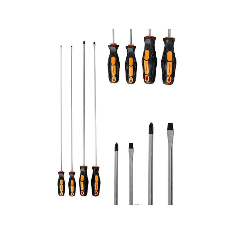 Set 4 cacciaviti di alta qualità in cromo vanadio, due a stella e 2 a taglio. Impugnatura in polipropilene ergonomico e antiscivolo, trattati a caldo e con punta magnetica. Robusti e pratici dal peso complessivo di 715 gr misurano 45 cm ciascuno. Riceverete il set in una confezione in morbida gomma trasparente per conservarli sempre al meglio.Caratteristiche:4 cacciaviti in cromo vanadio2 a stella PH1,PH22 a taglio 4MM, 6MMLunghezza 56 cm ciascuno (dall'impugnatura)Impugnatura in polipropilene antiscivolo ed ergonomicaPunta magneticaCustodia in morbida gomma trasparente