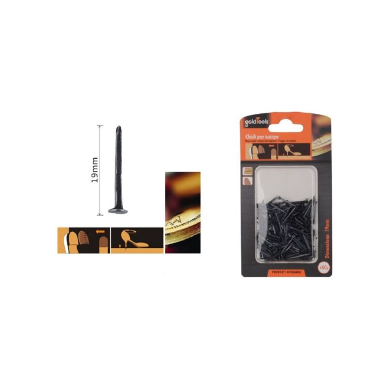 Set Confezione 60gr Chiodi per Scarpe 19mm Neri per Riparazioni Calzolaio 90889Le puntine chiodi neri per scarpe sono essenziali per garantire riparazioni durature di mobili per calzature da calzolaio, con una lunghezza di 19mm. Questi chiodi per scarpe sono progettati per offrire un'elevata resistenza alla trazione, una lunga durata e una straordinaria resistenza alle condizioni avverse.Caratteristiche principali:Confezione da 60 gr: La confezione include un generoso quantitativo di chiodi per garantire un'eccellente disponibilità durante le riparazioni.Dimensione 19mm: La lunghezza di 19mm è ideale per una varietà di applicazioni di riparazione di calzature, garantendo una tenuta sicura e affidabile.Contenuto della confezione:60 grammi di chiodi per scarpe neri 19mm: Questi chiodi sono essenziali per riparazioni precise e durevoli di calzature, garantendo una robusta tenuta e una finitura professionale.Grazie alla confezione da 60 gr, avrai a disposizione un ampio quantitativo di