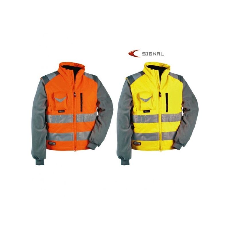 SIGNAL NORMATIVE EN 340 - EN 471 DESCRIZIONE - bande e inserti reflex 3M - tasca porta cellulare con E-CARE - passante auricolare - ampie tasche anteriori - tasca petto con zip impermeabile - inserto porta penne - tasca interna con zip - maniche in pile agganciabili tramite zip - fodera interna con spalla in pile - cappuccio regolabile a scomparsa - spacchetti laterali - fondo posteriore più lungo COMPOSIZIONE ESTERNO: 100% poliestere spalmato PU 200 g/mq IMBOTTITURA: 100% poliestere FODERA: 100% poliammide COLORI giallo arancione TAGLIE 44-64 disponibilità magazzino: 44-64