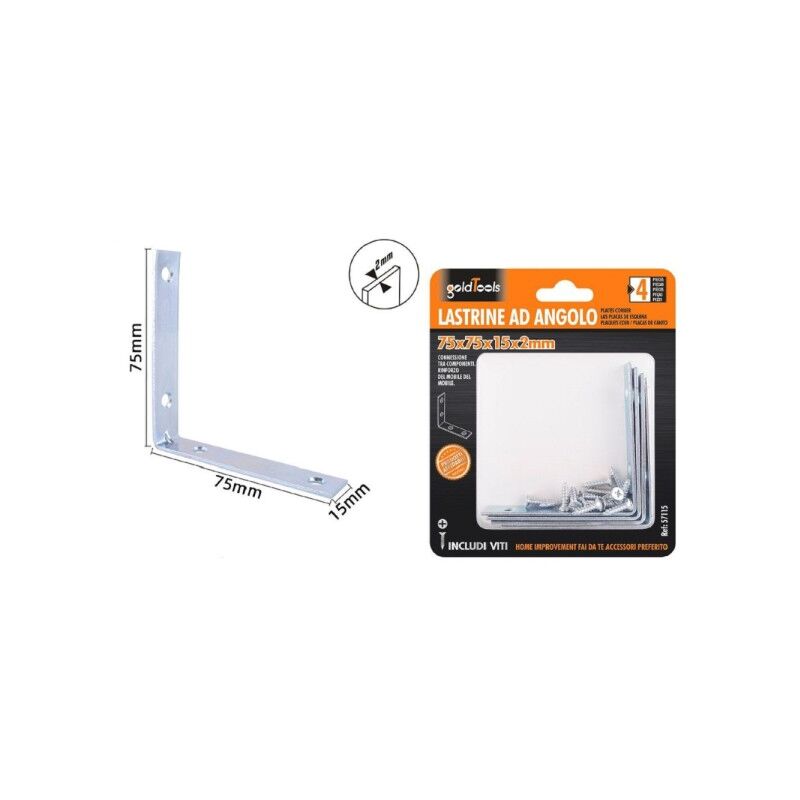 Scopri il potenziale del nostro Set 4pz Lastrine ad Angolo, l'alleato indispensabile per ogni progetto di fai-da-te e ristrutturazione!Caratteristiche Principali:Dimensioni ottimali: 75x75x15x2 mm, perfette per una vasta gamma di applicazioni.Robustezza e durabilità: Realizzate per garantire la massima resistenza e affidabilità nel tempo.Facilità di installazione: Con 4 fori predisposti per il fissaggio tramite viti per truciolare, l'installazione è rapida e senza complicazioni.Versatilità d'uso: Ideali per il rinforzo di sedie, mobili e per vari utilizi hobbystici.Il nostro Set 4pz Lastrine ad Angolo rappresenta la soluzione perfetta per chi cerca affidabilità e precisione nel fissaggio di mensole, ripiani o mobili. Grazie alle sue dimensioni di 75x75x15x2 mm e alla dotazione di viti mobili, queste lastrine angolari offrono una versatilità senza pari, adattandosi a numerosi contesti di utilizzo, dal bricolage professionale agli hobby più creativi.Confezione Include:4x Lastrine