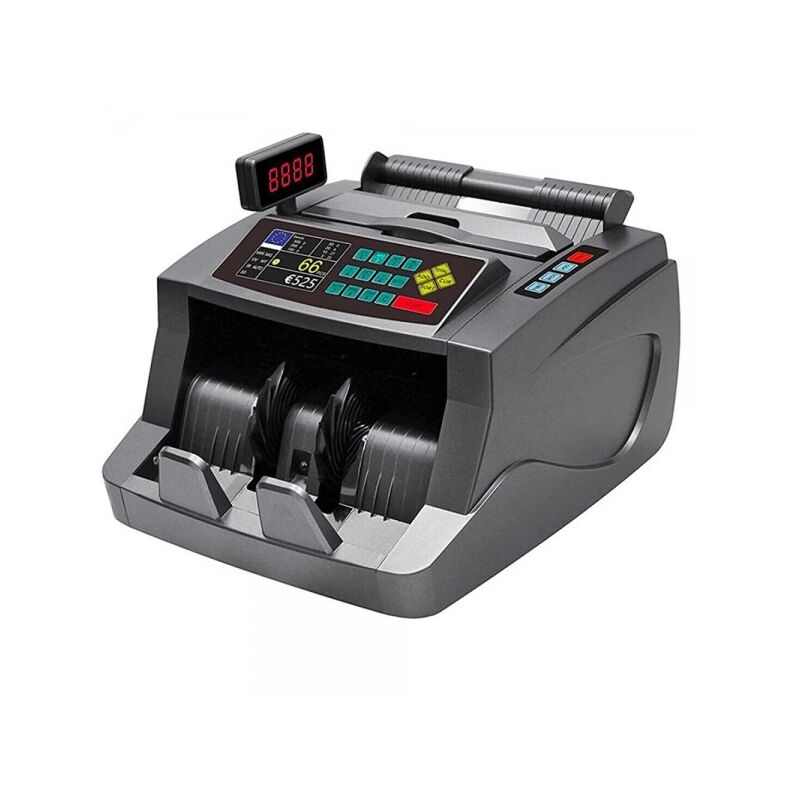 Macchina Conta Banconote Automatico Multi Valuta Rivelatore di Banconote FalseLa macchina conta banconote è un dispositivo progettato principalmente per contare con precisione la quanità del denaro e per aumentare l'efficienza degli sportelli riducendo l'errore umano. Inoltre, il contatore verifica la presenza di banconote danneggiate o contraffatte, utilizzando le seguenti rilevazioni: magnetico MG ultravioletto, UV infrarossi IR 3D, spessore banconote, MT larghezza banconote, size conteggio batch e funzione ADD. Questa macchina fa parte dell'ultima generazione di valorizzatori di denaro introdotti nel commercio mondiale, si dimostra subito all' avanguardia e al passo con l'evoluzione della tecnologia. Dispone di doppio schermo LCD, ove si evince la quantità totale e i pezzi di banconote. Ha una velocità di conteggio da 800 a 1200 pz/min.Caratteristiche: Conta banconote Velocità conteggio da 800 a 1200 pz/min Capacità alimentatore 300 pz Capacità raccoglitore 200 pz Conto di