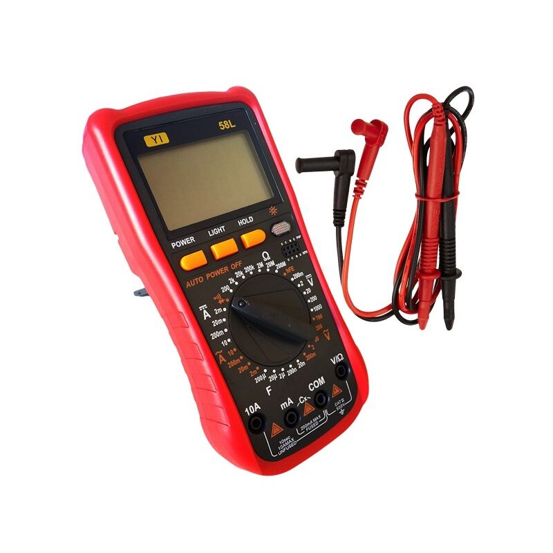 Ottimo tester multimeter digitale multifunzione. Professionale e completo di puntali per la misurazione. Spegnimento automaticoCaratteristiche tecniche:DC Tensione:- Passi: 200mV, 2V, 20V, 200V, 1000V- Risoluzione: 0.1 mV, 1 mV, 10 mV, 100 mV, 1 V- Precisione: 0,5% + 0,8% + 1cifra a 2 cifre Tensione AC:- Passi: 220mV, 2V, 20V, 200V, 700V- Risoluzione: 0.1 mV, 1 mV, 10 mV, 100 mV, 1 V- Precisione: 0,8% + 3 cifre, 1,2% + 3 cifre DC e AC amperaggio:- Passi: 2mA, 20 mA, 200 mA, 10 A- Risoluzione: 1uA, 10 uA, 100 uA, 10mA- Precisione: 1% + 1 cifra, 2% + 5 cifre Resistenza:- Velocità: 200, 2k, 20k, 200k, 2MOhm, 20MOhm, 200MOhm- Risoluzione: 0.1, 1, 10, 100, 1k Ohm, 10k, 100 kOhm- Precisione: 0,8% + 2 cifre, 1,5% + 2 cifre Capacità:- Passi: 20nF, 200nf, 2uF, 20uF, 200uF- Risoluzione: 10pF, 100pF, 1nF, 10uF, 100uF- Precisione: 2.5% + 5 cifre Specifiche tecniche:- Campo di temperatura ottimale: 0-40 ° C- Peso: circa 300g (batteria inclusa) Il grado di accuratezza:- DC Tensione 200mV-1000V